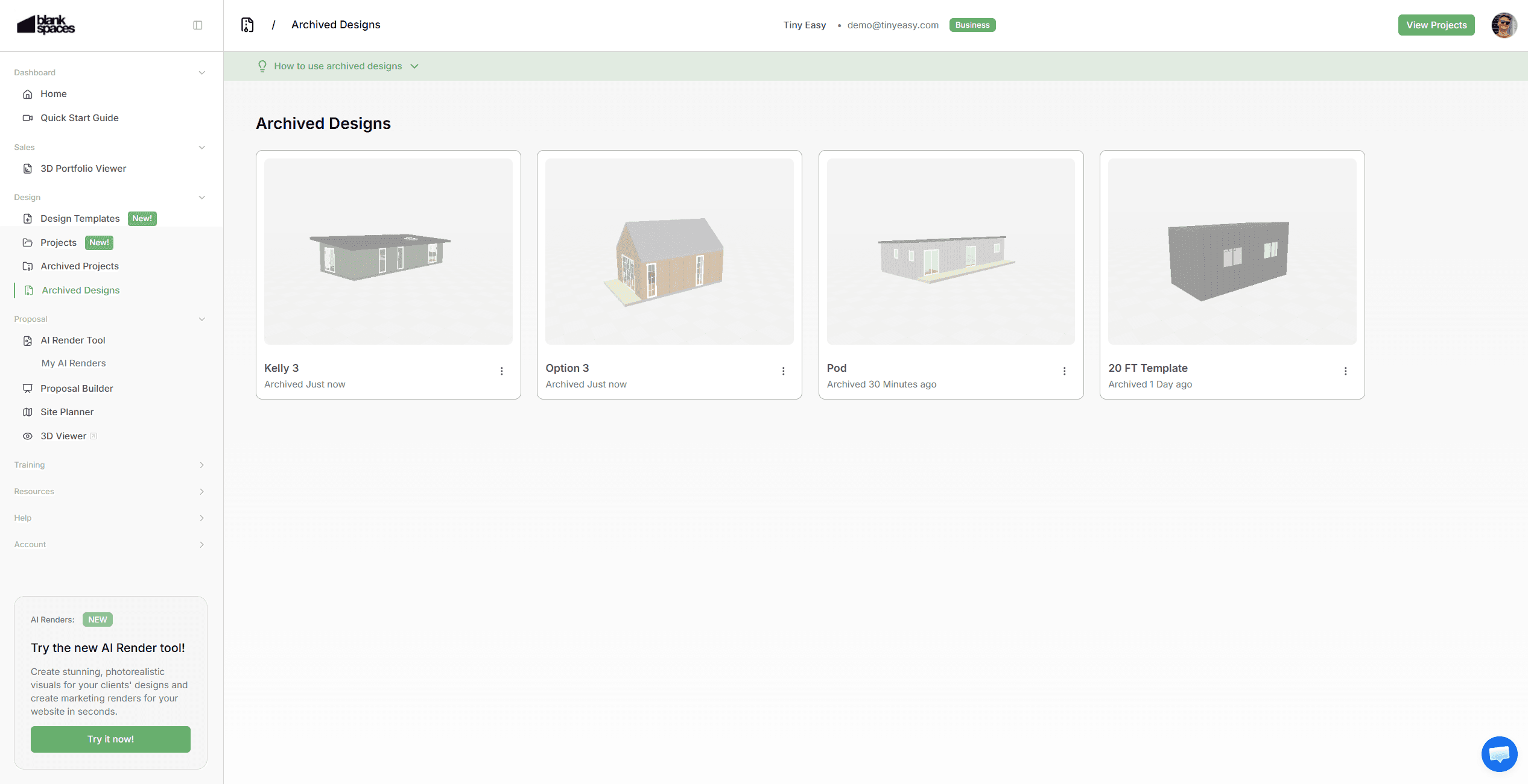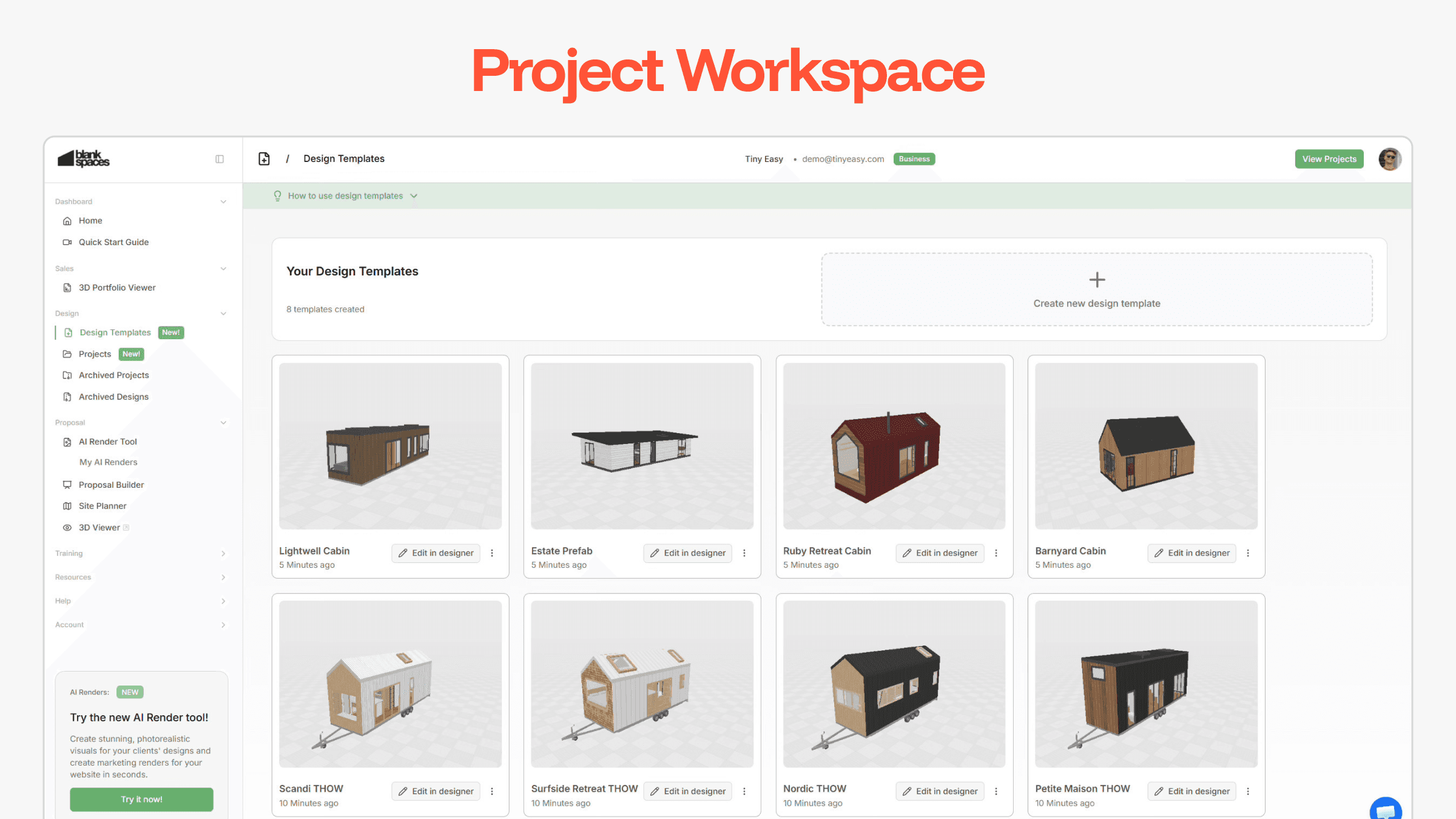 The Project Workspace is a new way to create, organize, and manage your projects and designs directly from your Dashboard - instead of accessing them through the 3D Designer software.