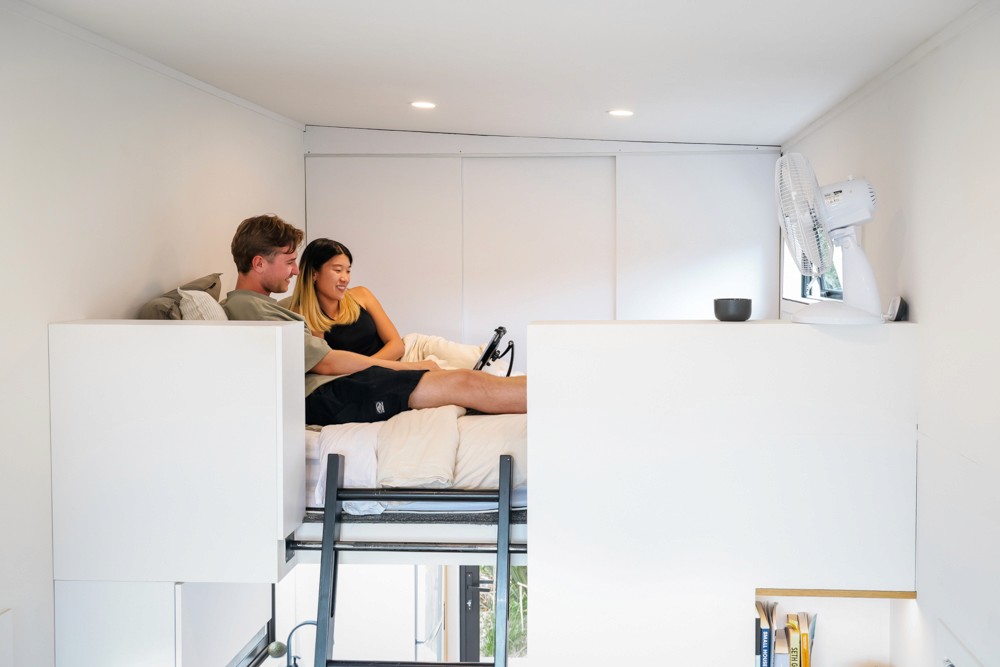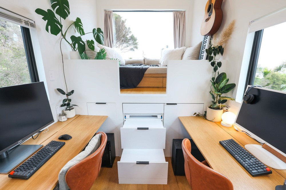 Drop leaf desks to double-use the space for dining, and access the under-loft storage. Desk units include in-built storage, and can be removed if not required.