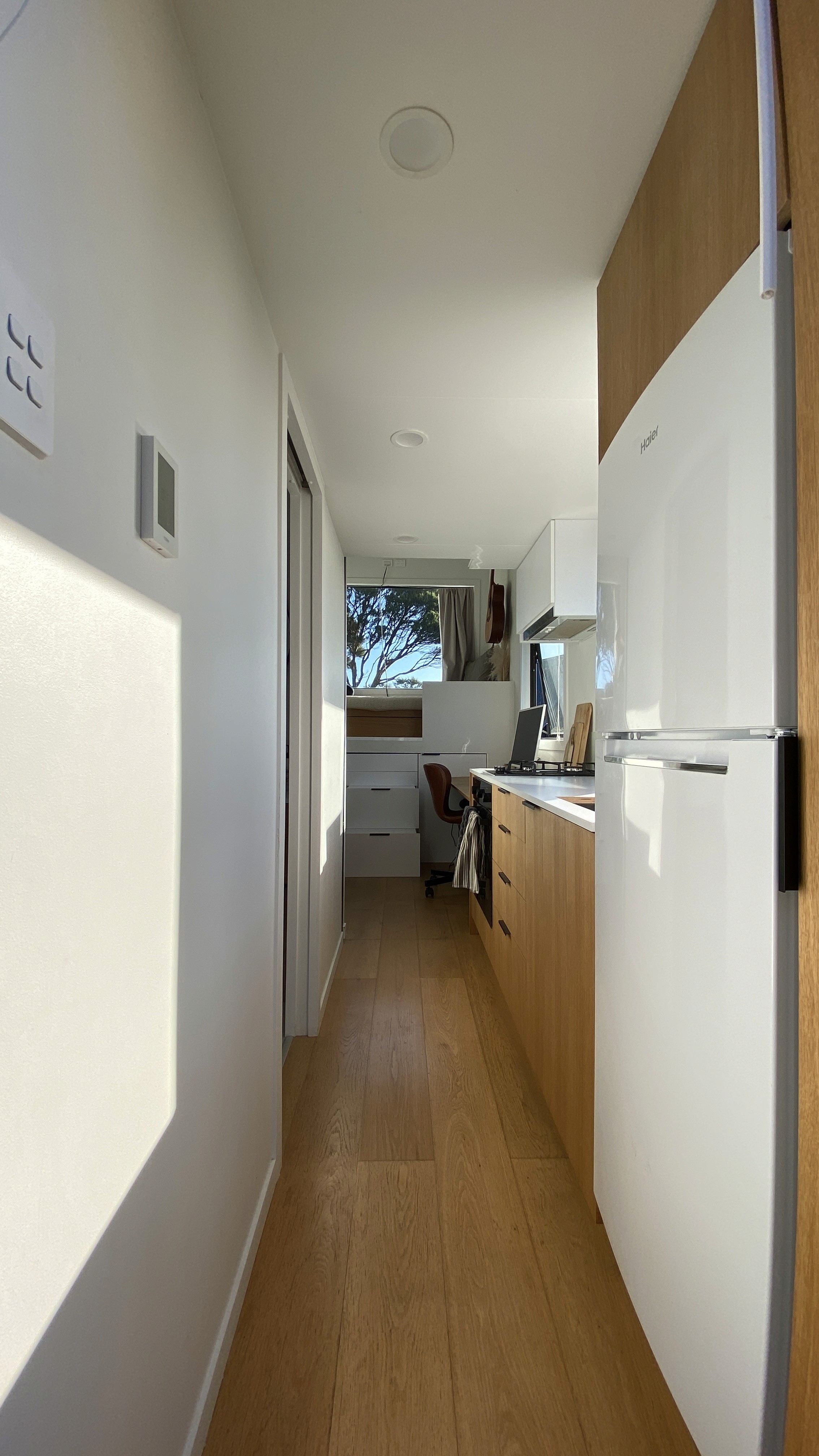 Designed with sustainability and mobility in mind, this handcrafted tiny home is more than just a place to live—it’s a lifestyle. Featuring a multifunctional interior, high-end finishes, and clever storage solutions, this home proves that downsizing doesn’t mean sacrificing comfort. From the bright, airy living space to the sleek, fully-equipped kitchen and spa-like bathroom, every detail is crafted to maximize both space and livability.