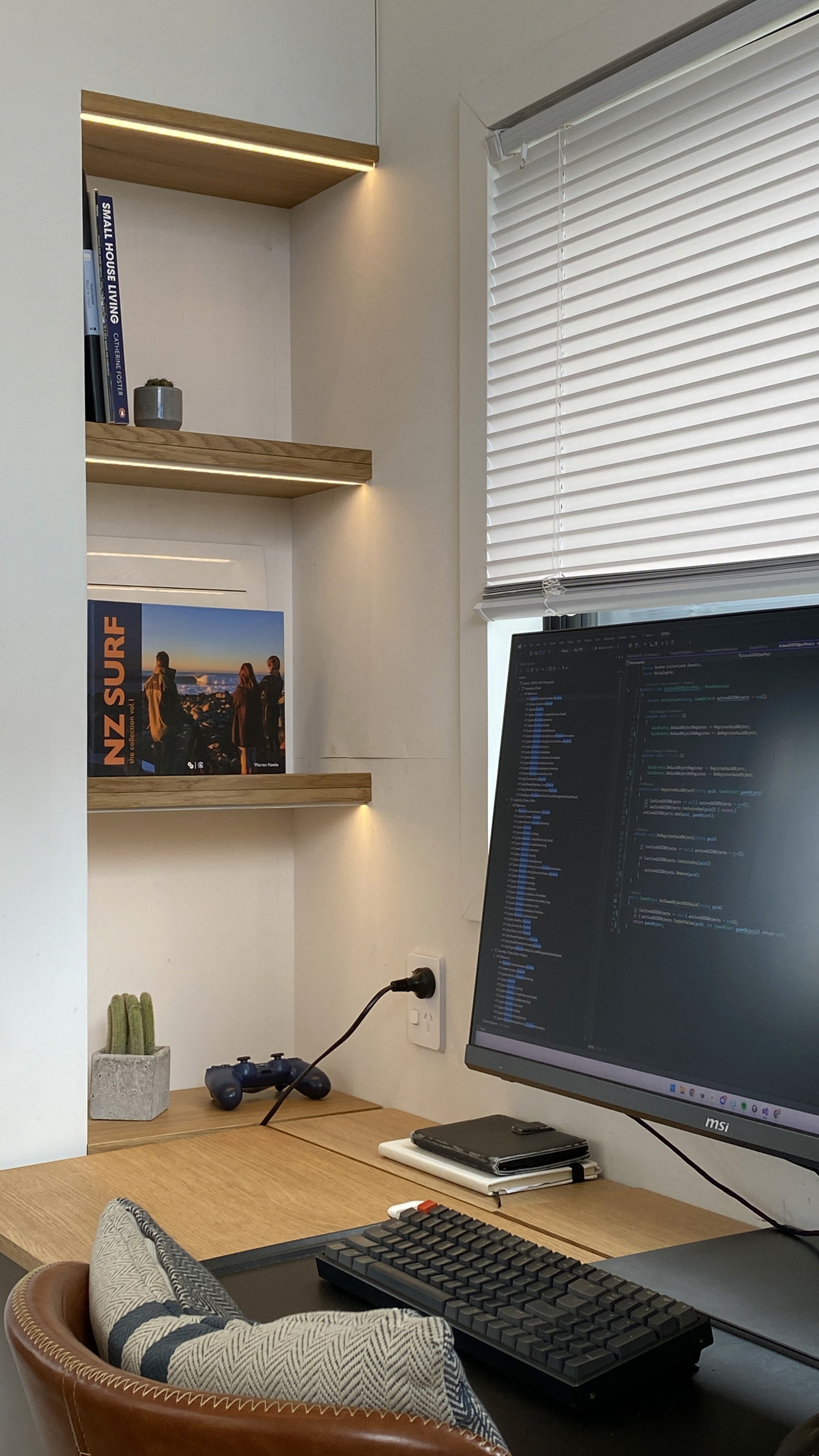 3x feature oak shelves with underlit LED lighting.