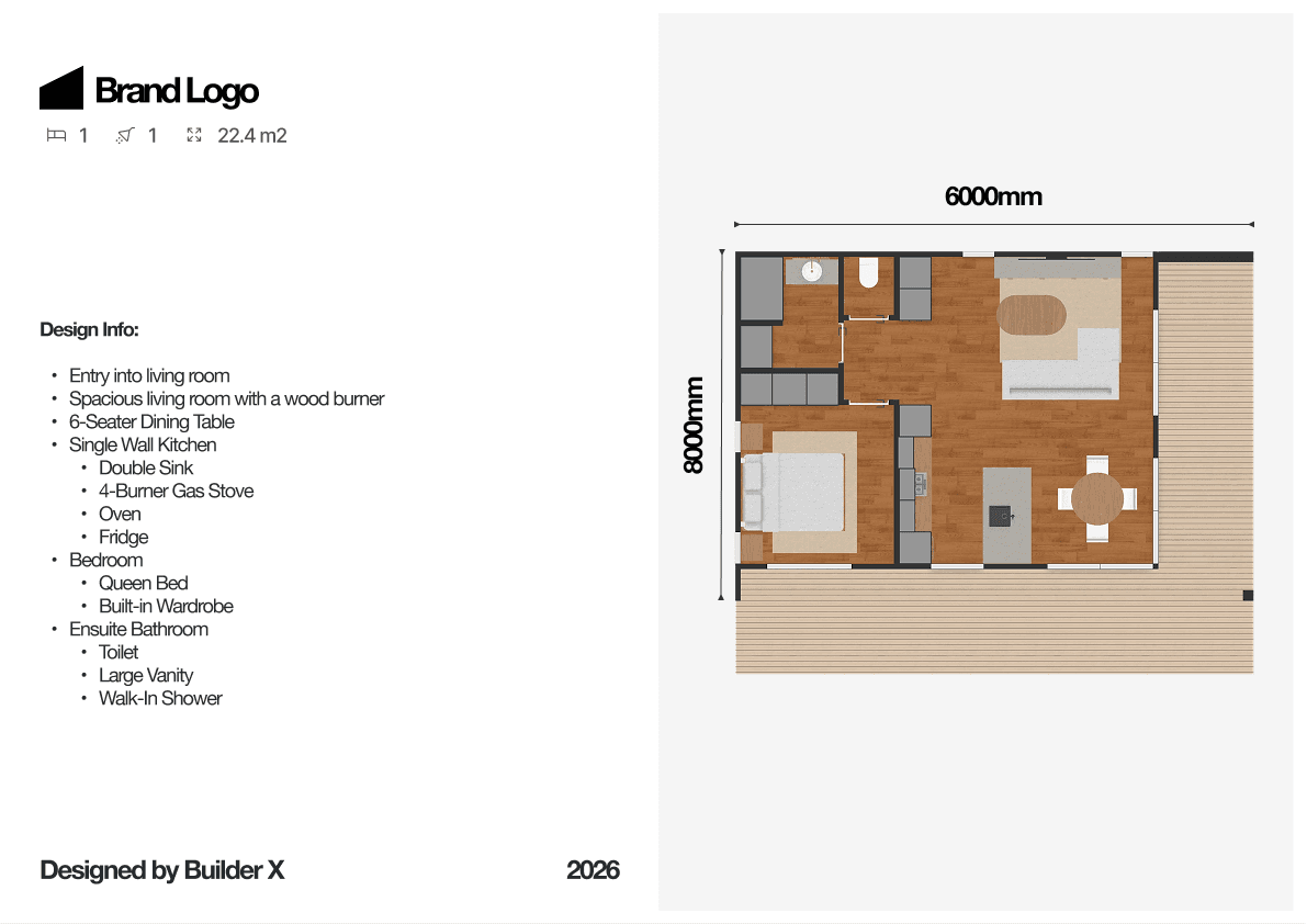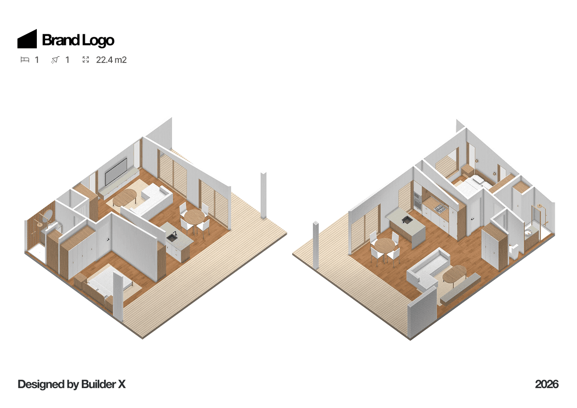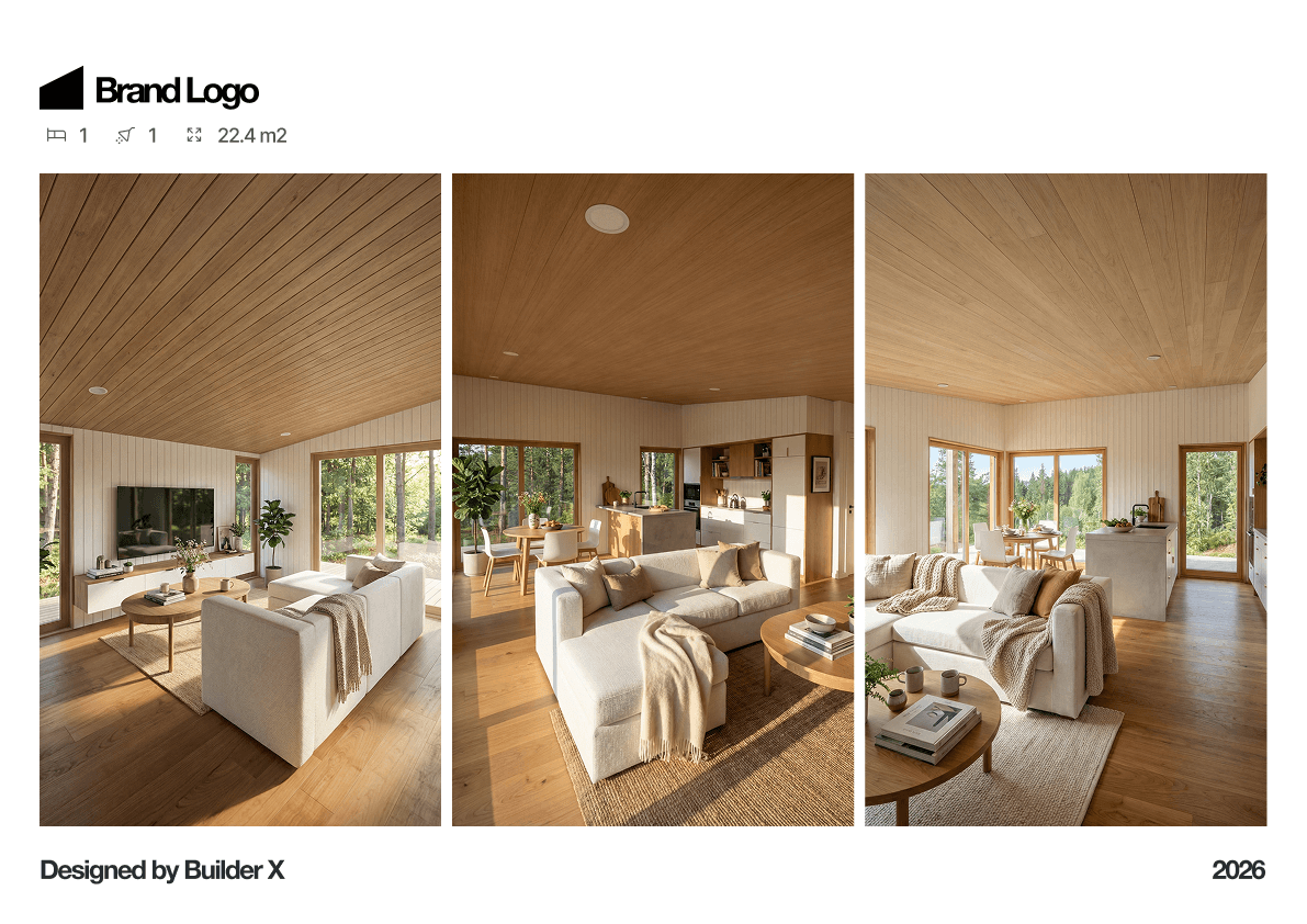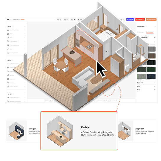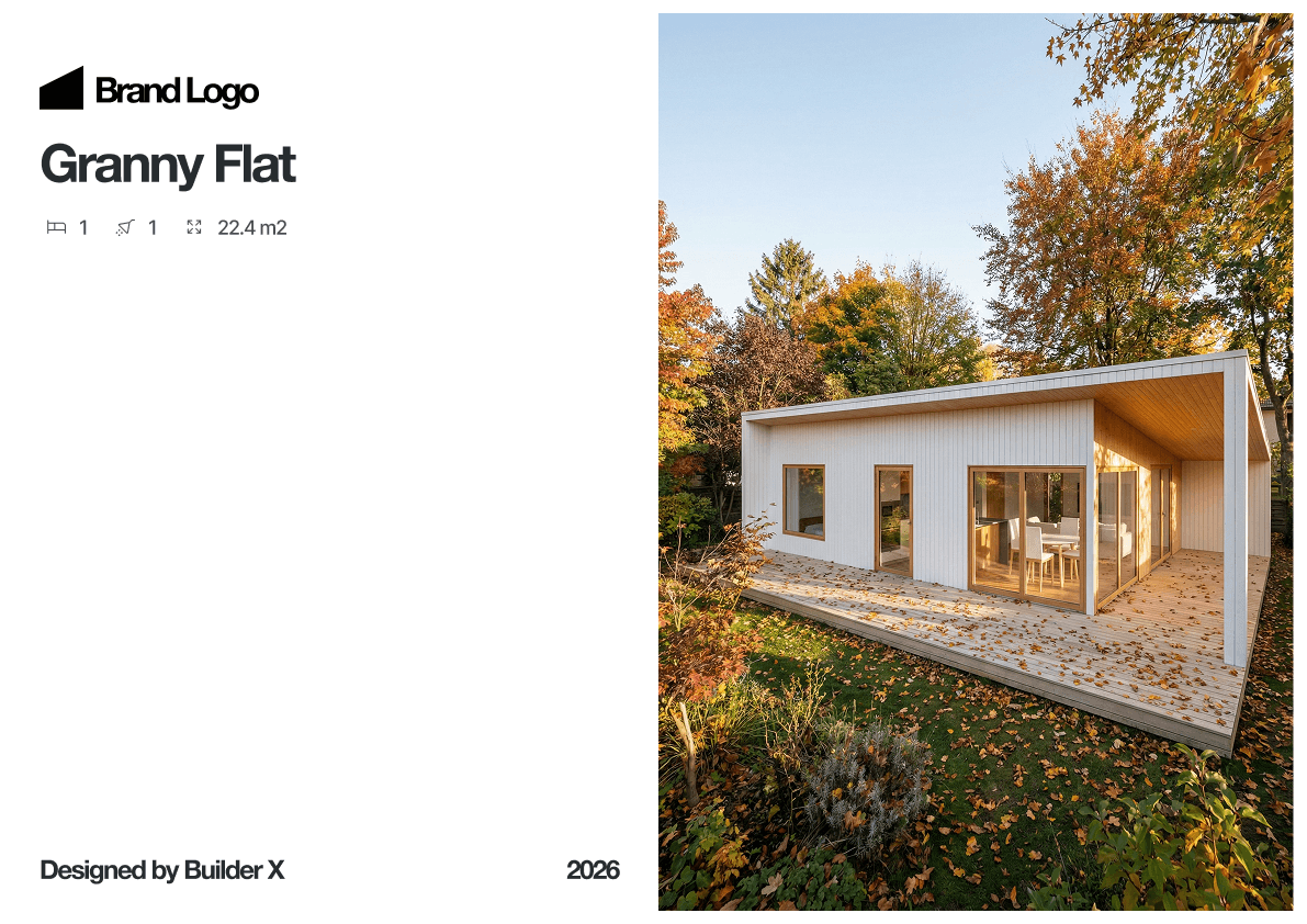 Showcase your granny flat model range in interactive 3D. Allow visitors to explore layouts, external styles, finishes, and available options before booking a meeting. Capture structured enquiries directly from the 3D experience.